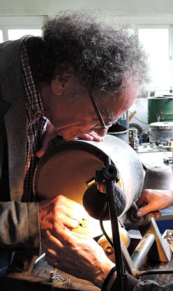 auf dem Tisch das Glockenpositiv, links davon eine fertige